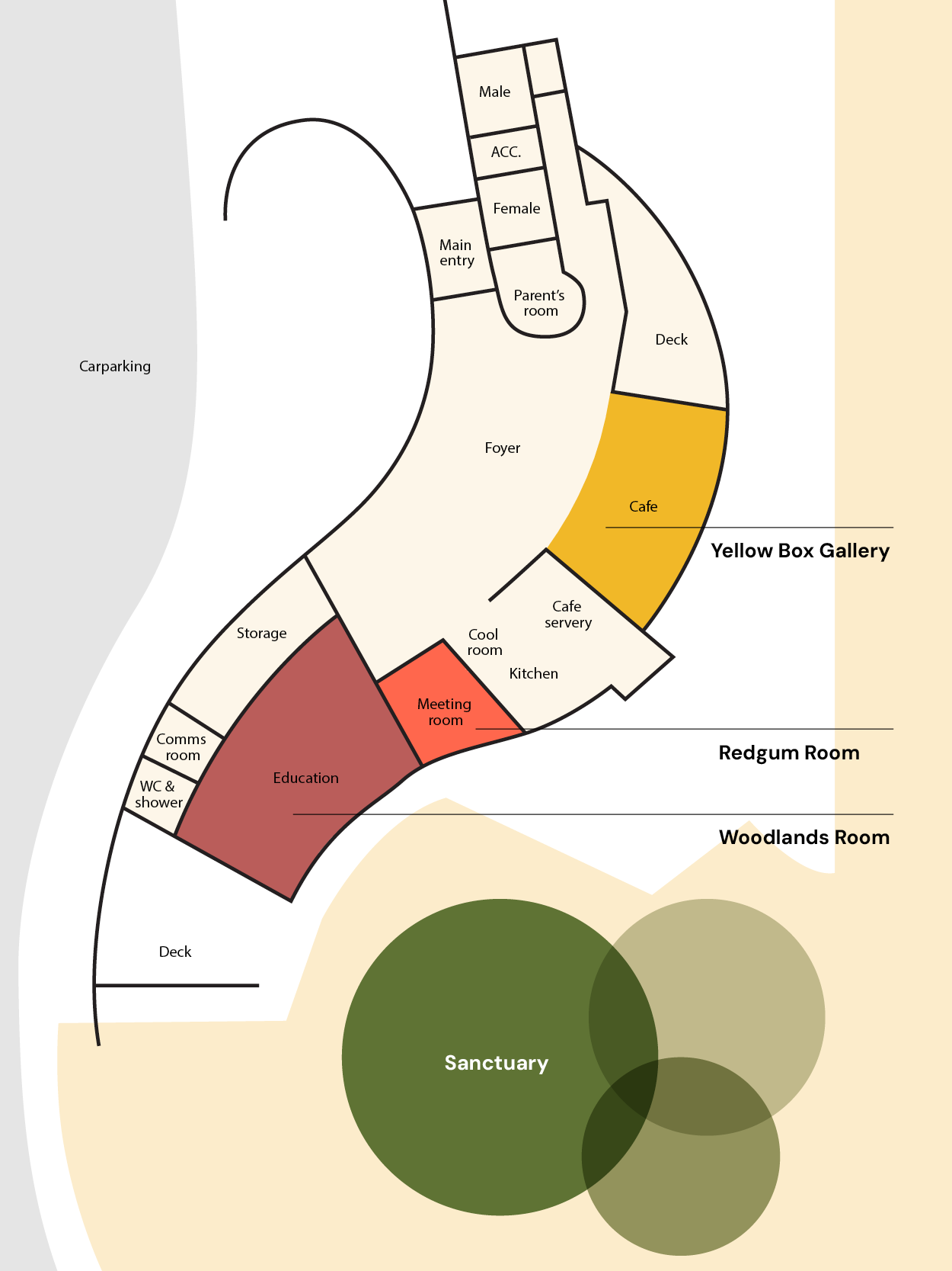 Wildbark visitor centre sits at the edge of Mulligans Flat Woodland Sanctuary, Australia’s largest single Box-gum Grassy-woodland area managed for conservation.